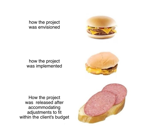 Man, I’m currently in a project which started out with 2 major goals. Pretty early on, we got told that one of the goals is practically impossible, so we decided to ignore that. And we realized the other goal needs to be simplified significantly to be achievable in the slightest, although we still weren’t sure, if it violates the laws of physics.