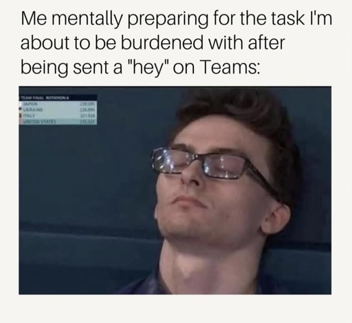 minus-squareexplodicle@sh.itjust.workslinkfedilinkEnglisharrow-up1·7 months ago“I’ll be right there 1 min” and then I corner them at their desk until the thing they want makes sense.