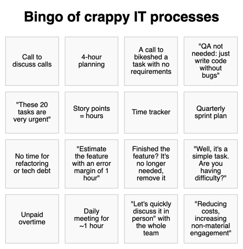 Saying we’re trying out a new process every sprint while doing the same thing we always have