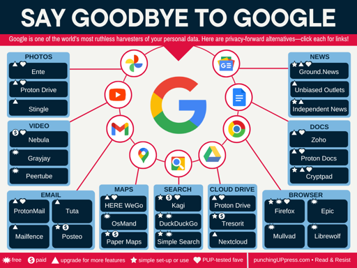 I created an infographic of privacy-forward alternatives to Google products…and would love your feedback.