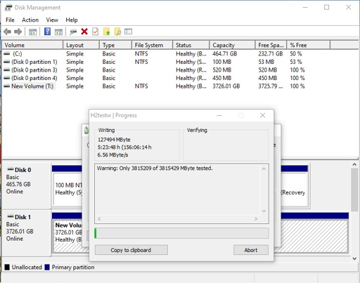 So i’m testing one of the drives I got on amazon using an old computer. It started off promising, didn’t get any errors when formating the drive, write speed using a usb adapter at 25mb/s… Then it dropped off to 7mb/s and the expected time shot up from 40hours to 156h🤣