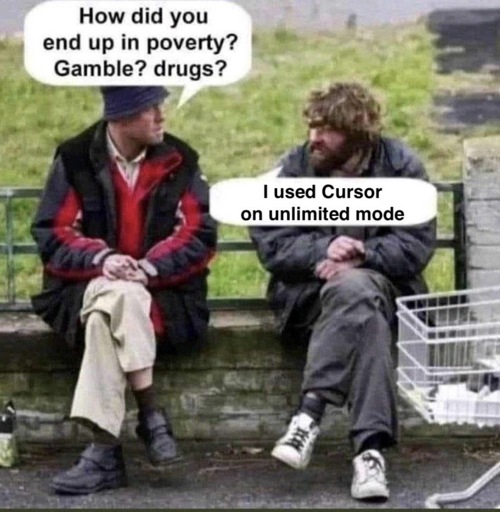 minus-squareitkovian@lemmy.worldlinkfedilinkarrow-up6·21 days agoNaah, bro, Cursor forgot to turn off my Azure instance.