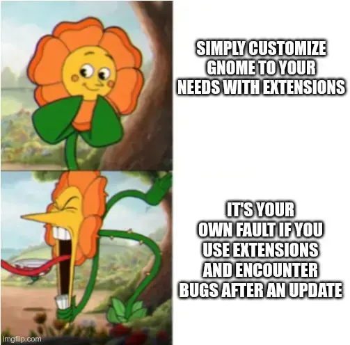 minus-squareMadhuGururajan@programming.devlinkfedilinkEnglisharrow-up3·22 days agoWrong on all counts. the voluntary software authors actually go out of their way to spite users, extension developers and sysadmins by constantly trying to redefine what is a standard UX.