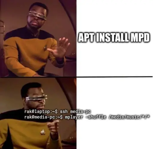 Raktajino@laptop:~$ ssh rak@media-pc