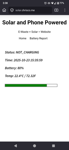 This is my solar powered setup. A somewhat old Pixel 6a that fell from a foot and a half (really!?), a 10w Solar setup that was around 20$ on amazon. And an old compost container I have too many of. Ill be giving it a proper 3d printed case when I get a chance (and a host of other changes) but for now this works! Its worth about 40$ in total (the phone is now worth about 21$ on the open market).