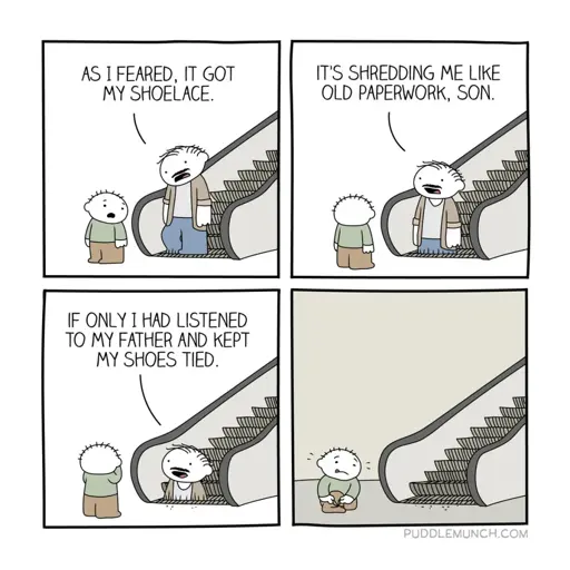I’m 41 now and still wary on escalators. I carefully position my feet in the center of the stair and will hold up any long clothes like skirts that might get caught accidentally. My husband thinks it’s funny.