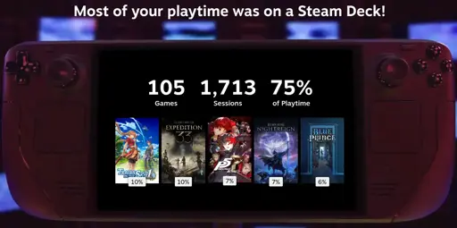 Fubarberry@sopuli.xyzM to Steam Hardware@sopuli.xyzEnglish · 4 months agoSteam Replay is out, share your deck statssopuli.xyzimagemessage-square55linkfedilinkarrow-up1169arrow-down13file-text