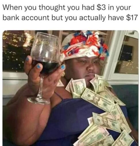 Why, of course! She only has $17 in her bank account, because she’s using the rest of her money as a blanket.