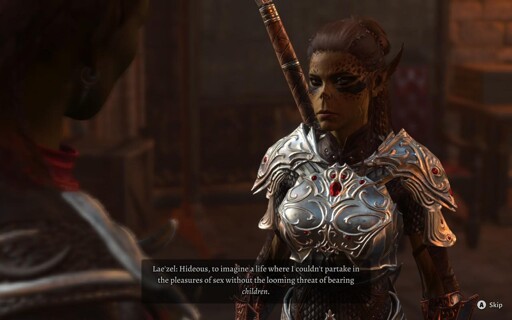 If pressed to elaborate, she might explain that she meant all forms of sex. Clearly there are dozens of ways for heterosexuals, homosexuals, or anyone else to partake in the pleasures of sex with zero risk of pregnancy. But Lae’zel wants to partake in all the pleasures of sex.