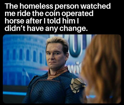 minus-squareDarkassassin07@lemmy.calinkfedilinkEnglisharrow-up18·2 months agoHe asked for ‘spare change’; I’ve already got plans for these coins, it’s not spare at all.