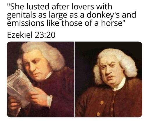 minus-squareChexMax@lemmy.worldlinkfedilinkEnglisharrow-up19arrow-down1·15 days agoAnd also, what women thinks, “the best part of sex for me is the mess at the end! The more I have to clean up after, the better, especially in this time of no running water!”