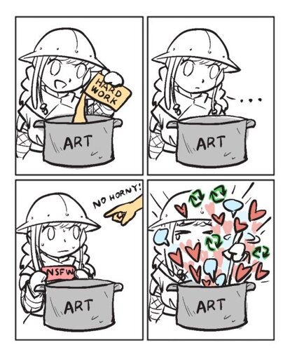 NSFW art often gets disproportionate attention (likes and reblogs pouring out of the pot) compared with SFW art.